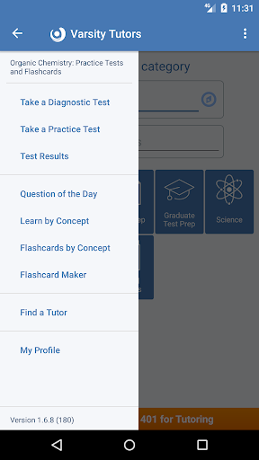 В приложении находятся шесть диагностических тестов, которые можно использовать для определения текущего понимания органической химии. Кроме того, существует 171 тест на практике органической химии, которые студент может проработать, чтобы повысить свои навыки проведения тестов. Когда студент ищет более короткие учебные занятия, он/она может проработать интерактивные карточки в приложении Varsity Tutors, будь то только одна вспышка или десятки. Существует также вопрос дня, на который студенты могут подписаться и получать повседневную практику в области органической химии. Например, приложение Varsity Tutors Organic Chemistry для смартфонов и планшетов с мощностью Android предлагает ряд различных ресурсов, которые могут быть персонализированы для планов обучения каждого студента. Применяя комбинацию тяжелой работы и умных учебных привычек, студент может увеличить свои шансы на успех в органической химии и достичь своих академических целей.