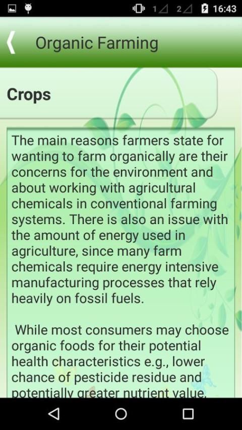 Теперь получить широкий спектр информации о внутренней органического земледелия с добавлением визуальных в "Органическое сельское хозяйство" приложение для повышения вашего обучения.