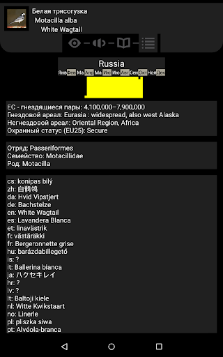 Вы также можете беспрепятственно включить ваши файлы (фотографии и звуки). Дополнительные фукции включают поиск по визуальным характеристикам птицы и Орнито-тренер, позволяющий тренировать познание наиболее часто встречаемых птиц по их характеристикам.