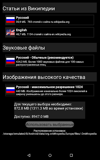 -статьи офлайн Википедия для всех птиц (ещё 3-50 МБ, зависит от выбранного модуля)