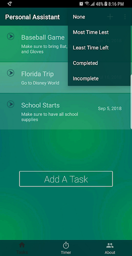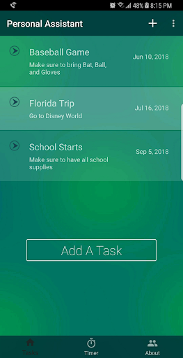 PAss is an app that allows you to add certain tasks which needs to be done within certain time. Just add a task and let PAss take care of it. PAss will remind you and send out a notification when your nearing the deadline. You can also sort from most time to least time remaining, or vice versa. It has a simple design so basically anyone can maneuver through the app without any difficulty.