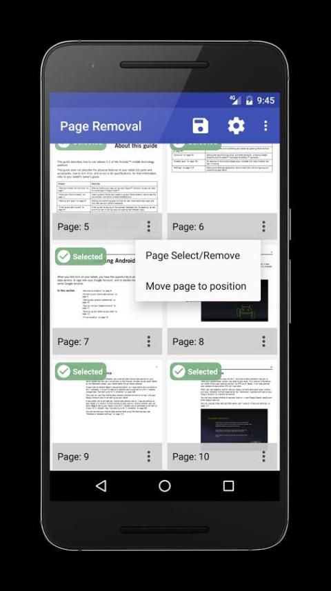 Применение используется для удаления PDF-страниц. Чтобы удалить страницу только длительное нажатие на выбранном элементе или нажмите на иконку Дополнительные опции, прикрепленного к странице.
