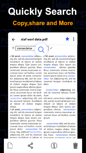 PDF Reader automatically extracts all PDF files from the phone memory storage, and manages PDF files simply and efficiently.