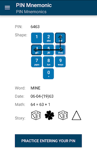 The application also provides the possibility to practice entering the PIN keeping the preferred mnemonic(s) in mind.