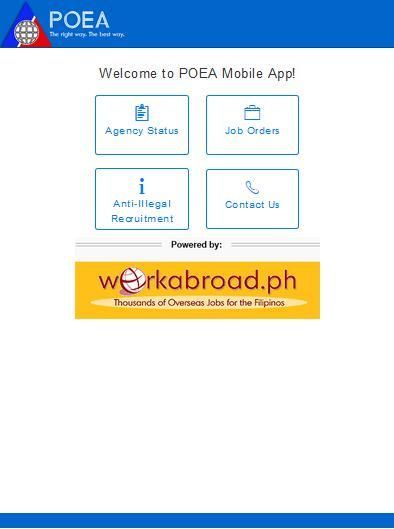 POEA Мобильные приложения разработан WorkAbroad.ph для филиппинской Overseas администрации занятости (POEA).
