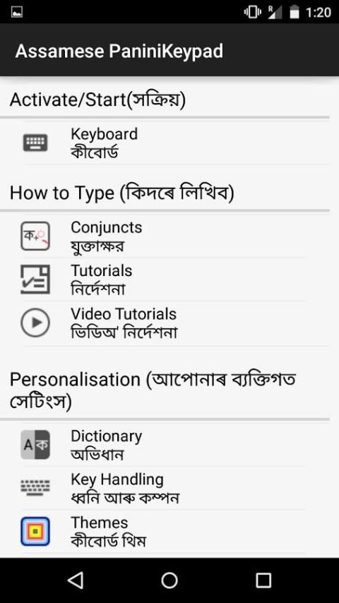 PaniniKeypad predictive texting technology allows people to type in Assamese(অসমীয়া) directly on their phones & tablets very fast & easily. PaniniKeypad for android phones is an IME (input method editor) that facilitate users to type any where inside the phone. PaniniKeypad technology has been developed for many other Indian languages also. This versatile input mechanism provides a better usability with limited no. of character present on screen. Watch Juktokkhar typing video on YouTube: http://www.youtube.com/watch?v=F-a-q3inUFs To install & launch procedure is mentioned at the bottom. Panini virtual keyboard based on statistical predictive texting. That makes typing experience very convenient to users. As you typing one character, next character will keep coming automatically right under your thumb. and exact words comes automatically from dictionary. Users can use predictive texting or choose words from dictionary. There are two rules of typing. 1. Look for your character on screen & press/touch indicated button. 2. Press 'Next List' for more or unable to find characters. You can easily type Conjunct(Juktaokkhar/যুক্তাক্ষর) & half characters with help of PaniniKeypad. First type one consonant then REF [্] character, then again put a consonant. This will make the conjunct (Juktaokkhar) characters automatically. Examples: মন্ত্র = ম+ন+্+ত+্+র সামৰ্থ্য = স+া+ম+ৰ+্+থ+্+য ভূতগ্ৰস্ত = ভ+ূ+ত+গ+্+ৰ+স+্+ত প্ৰাচুৰ্য = প+্+ৰ+া+চ+ু+ৰ+্+য পৃথিৱী = প+ৃ+থ+ি+ৱ+ী সৃষ্টিৰাজিৰ = স+ৃ+ষ+্+ট+ি+ৰ+া+জ+ি+ৰ REF is also a character, always appears in RED colour. Easy for recognition. Twice Press the space button to give the Dari at the end of sentences. Easy switch between Assamese PaniniKeypad & English Qwerty keypad. You can add/remove your custom words in dictionary. You can send sms, messages, greetings, email, blog, chat, update status on facebook, tweet, save contact book, jokes, lyrics, comments, search in regional language etc. Installation: 1. Download and install this application on phone. 2. Go to "Setting"->"Locale & text/Language & input" select Panini Keypad IME (check on). 3. Go to "Setting"->"Locale & text/Language & input" choose Default Keyboard/ input method as PaniniKeypad IME. 4. Back to text compose area, keyboard will appear on screen automatically. 5. Experience Fast & Easy typing in your language. Like PaniniKeypad on facebook & Connect us: http://www.facebook.com/pages/Bangla-Panini-Keypad-for-iPhones-iPad/190050871046870 All your suggestion, feedback & reviews welcome. admin@paninikeypad.com