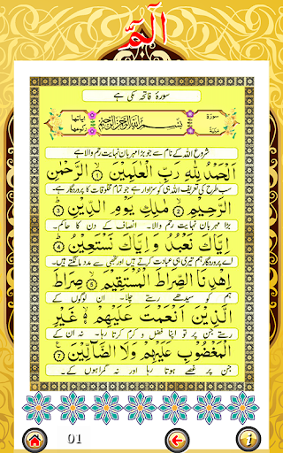 Священный Коран разделен на 30 часовней, также известных как тридцать пункт.В этом приложении PARA 1, который также известен как Para 1, представлен Tarjuma.