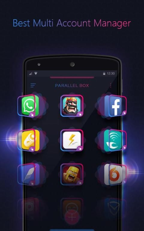 Основанная на технологии виртуализации двигателя, параллельный Box позволяет легко создавать клонированные приложения, которые могут выполняться параллельно и работать независимо от их оригинальных приложений. Если вам нужно отделить свою личную жизнь от работы, вы можете просто сделать это легко с помощью нескольких входов в систему для приложений, таких как Facebook, WhatsApp, Instagram, Snapchat и Messenger. Если вы хотите обновить свою игру счета быстрее или просто удвоить свой игровой опыт, вы можете запустить несколько учетных записей на Clash кланов, Clash Royale, или Игра войны. Добавление и переключение между несколькими учетными записями является то, что легко!