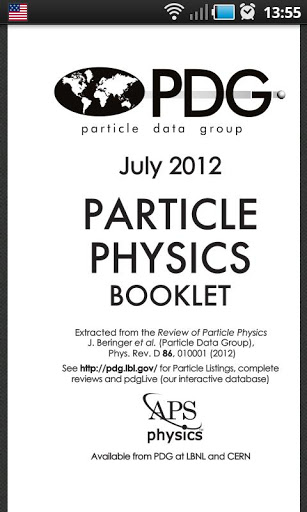 This app reproduces the Particle Physics Booklet from the Particle Data Group (PDG) with their permission. The app is neither produced nor supported by PDG.