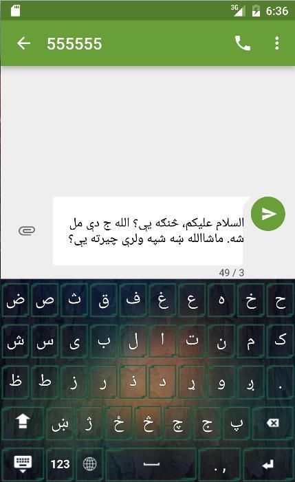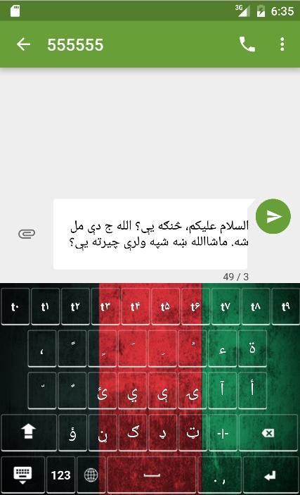 Пушту Клавиатура представляет собой комплексное решение для пушту. Это позволяет ввести с пушту букв в любом Android приложения. Это абсолютно бесплатно любой ценой, и встроенный в клавиатуру для Android устройств. Клавиатура работает для всех приложений, аналогичной по умолчанию Android клавиатуры.