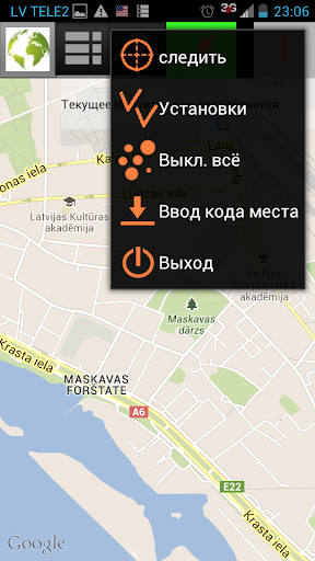 Для поиска и удержания текущего положения используйте кнопку "Следить" в главном меню. Для просмотра других удалённых мест карты нажмите на кнопку "Не следить".