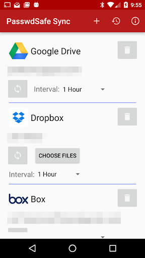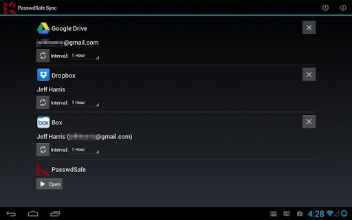 Passwdsafe Sync - это приложение Passwdsafe Companion для доступа к файлам, хранящимся в облачных услугах.Файлы паролей синхронизируются с коробкой, DropBox, Google Drive, OneDrive и SoyCloud.