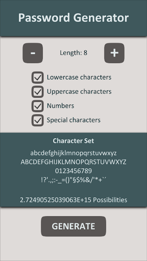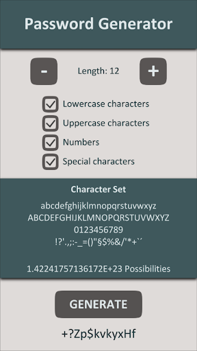 Generate as many secure passwords, as you want! Lenghts reach from 1 to 64, the charset can have up to 86 different characters. Thats up to 6,4*10^123 possibilities!