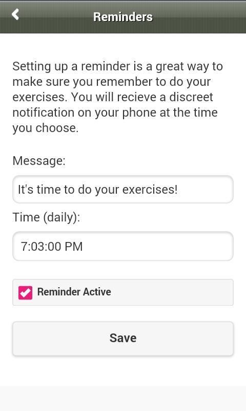 Настраиваемый и сдержанный приложение для помощи с тазового дна или упражнения Кегеля.
