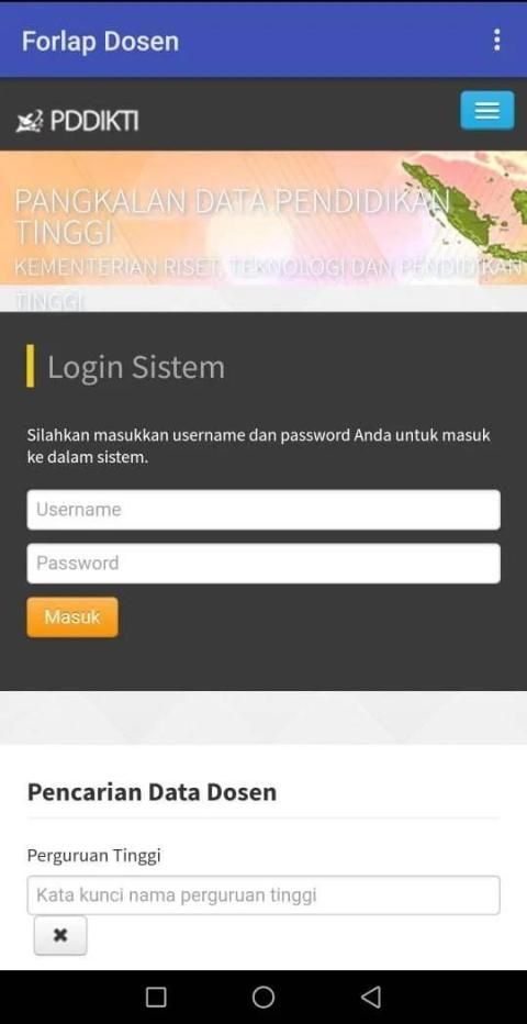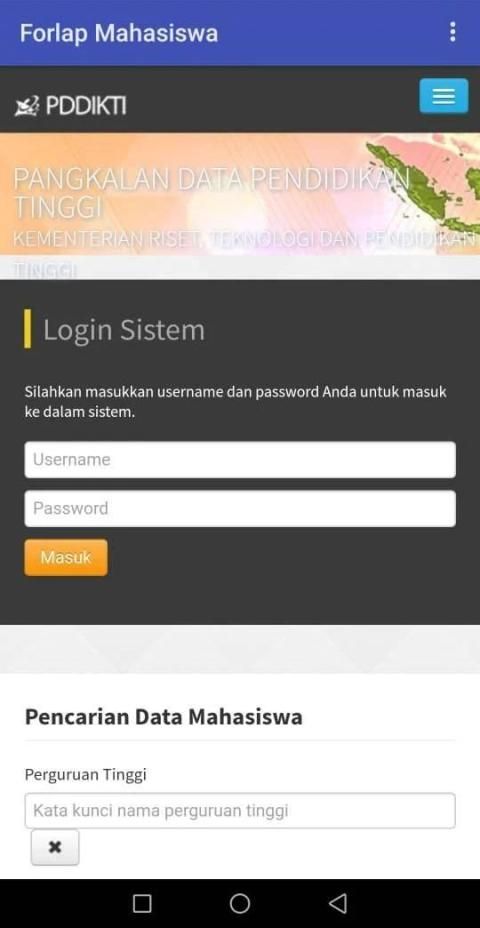 This application aims to make it easier for users to search for lecturer data or student data that is directly connected with Forlap Dikti