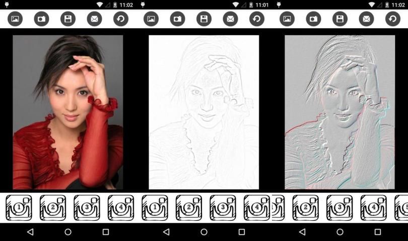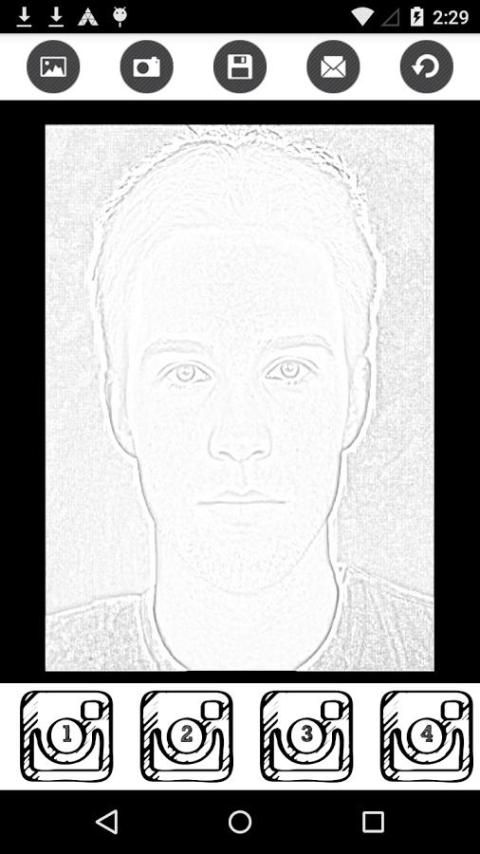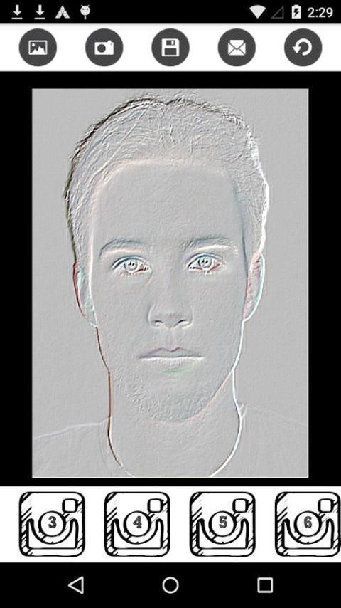 Just upload a photo of yourself, mainly facial and then apply one of the 6 sketches provided.