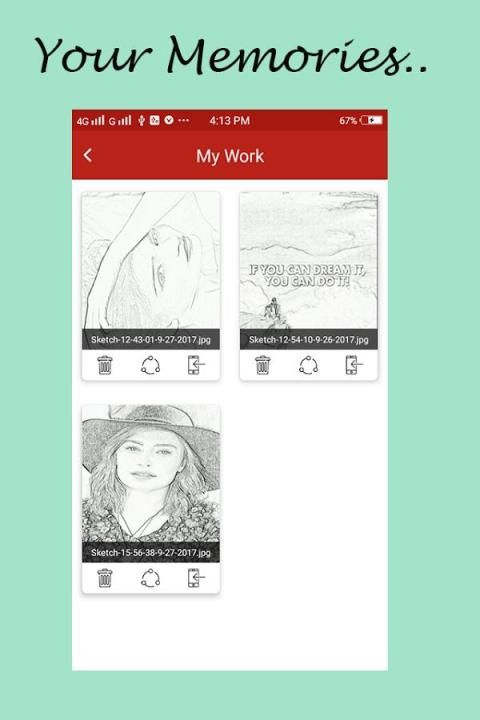 Сохранение фото эскиз можно легко сделать одним нажатием кнопки. Обмен фото также поддерживается. Фотографии могут быть разделены с WhatsApp, Facebook, Instagram, Twitter, электронная почта, сообщения, и т.д. Pencil Sketch Photo Editor сделать ваш простой и обычный образ привлекательным с различными эффектами эскиза. Это приложение для редактирования фото в более уникальном способе.