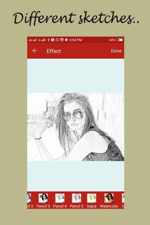 С помощью этого карандаша Sketch Photo Editor сделать ваши друг и членами семьи фото более особенным и подарок их портрет с другим эскизом эффектом.