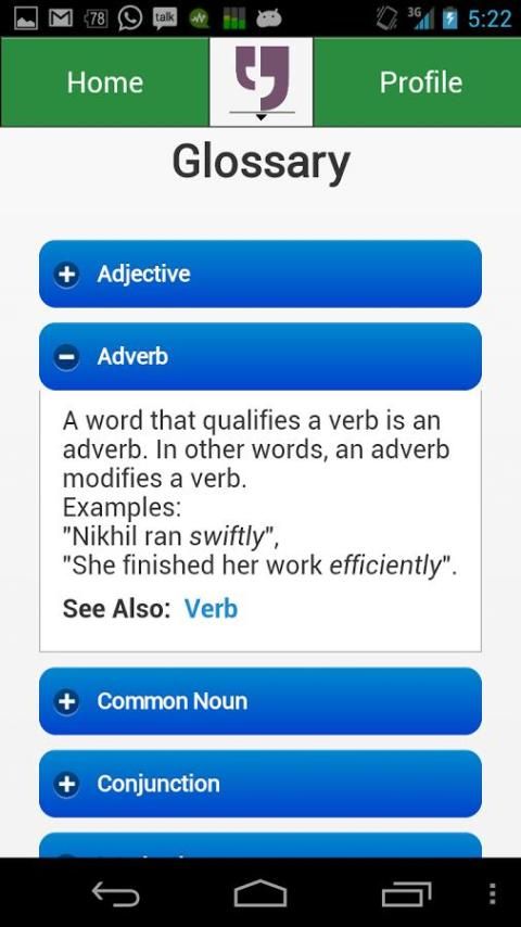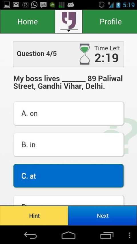 Совершенствуйте свои навыки английского языка с помощью интерактивной викторины платформу, которая проверяет свой уровень мастерства, дает вам обратную связь на своих ошибках, становится легче или труднее в зависимости от того, как вы набрали.