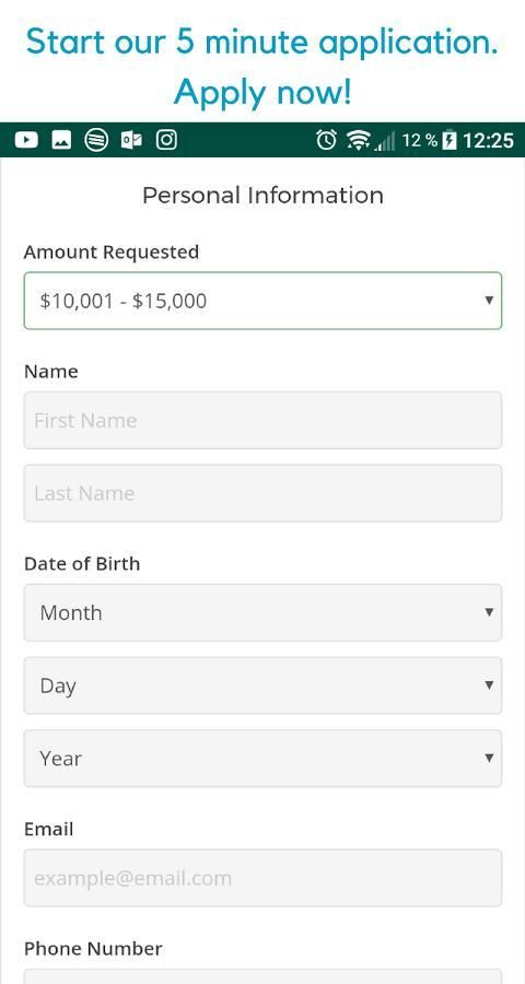 Мы управляем экспансивной сеть кредиторов, чтобы предоставить нашим клиентам премиум-доступ к личным кредитам. Нанести на любую сумму до $ 15 000 за счет одного простого приложения, 24 часа в сутки, 7 дней в неделю. Наши кредиторы предлагают как партии и краткосрочные кредиты, соединяя вас с кредитом, который работает для вас.