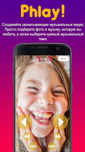 Создавайте захватывающие музыкальные видео, Просто подберите фото и музыку, которую вы любите, а затем выберите нужный музыкальный темп, и делитесь ими с друзьями.