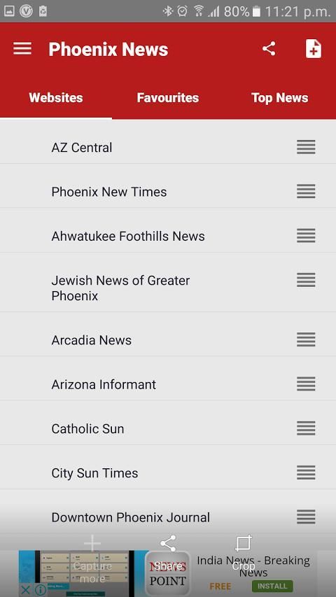 В Phoenix News App, пользователи могут читать новости из более чем 10 + наиболее потребляемых сайтов, таких как;