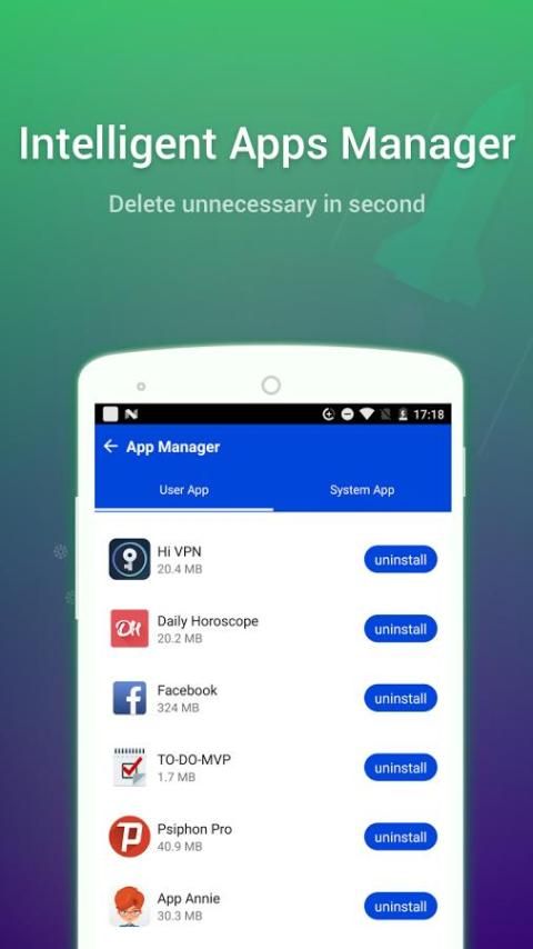 Это простой и удобный пылесос, и имеет сильную силу для повышения производительности Android устройств! Просто быстро помогает избавиться от ужасного опыта пользователя.
