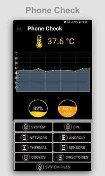 Мобильные телефоны в эти дни стали неотъемлемой частью нашей жизни, а не только для общения, но и для других материалов, таких как серфинг, ведение бизнеса и многие других. Это очень важно, чтобы оборудование вашего телефона работы и никто не может позволить себе ее выхода из строя. «Телефон Check» позволяет быстро сканировать ваш Android телефон аппаратной информации о датчиках деталей, деталей телефонных сигналов, состояние GPS, информационная система, аккумулятор, процессор, дисплей и т.д. всего за один клик. «Телефон Проверка» предоставляет подробную аппаратную информацию о вашем устройстве Android.