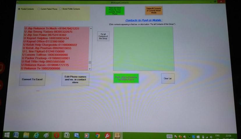 Это приложение упакован окна приложения и в самой которые могут быть отправлены на компьютер Windows или планшет после нажатия кнопки "Как использовать" на это приложение. Это приложение позволяет хранить все мобильные телефон контактные номера на окна таблетки или компьютера, получить их в MS Excel файла, редактировать любой список контактов, объединение всех списке контактов и изменения мобильных телефонов контакты им несколько секунд на причудливый щелчком мыши. Это объявление бесплатно. Это приложение также встроен в другое приложение - Быстрый менеджера из тех же разработчиков, которая имеет несколько другие функции также, кроме этого. Пользователи могут установить приложение, относящуюся к ним.