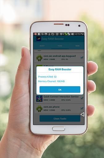 Очистка памяти (RAM) и оптимизировать скорость телефона путем удаления лишних фоновых задач.