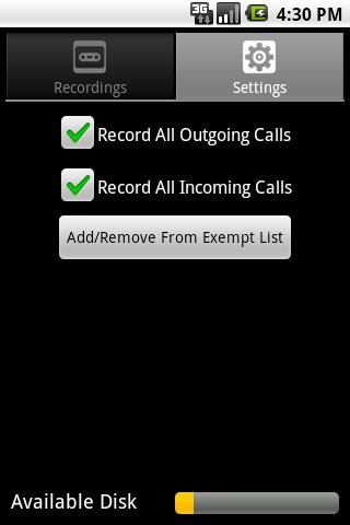 After finishing a call, you can listen to a playback using the simple, intuitive interface. Play, pause, fast-forward and rewind the playback has never been easier. Don't want the recording anymore? Delete it with a long press!
