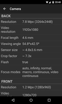 Информация о камере вашего устройства, такие как разрешение, фокусное расстояние, кроп-фактор по отношению к 35-миллиметровой пленке, режимы фокусировки, размер матрицы...