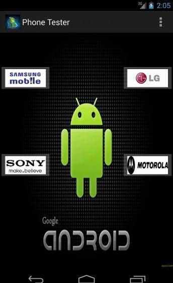Phone Tester application will help you test everything about your Smartphone. You often need to know many things about your smartphones hardware and software, this app will help you know everything about your Smartphone.In order to test your Smartphone you just need to simply tap the option. When the options on the screen are tapped, they unlock a hidden menus with more options and information for your device.There are over 40 tests for the smartphones of some of the leading smartphone manufacturers **LCD DISPLAY TEST** **AUDIO TEST** **WIRELESS LAN TEST** **GPS TEST** **VIBRATION AND BACKLIGHT TEST** and etc