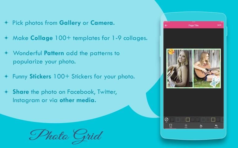 Фото Сетка, фото коллажей отлично Photo Collage Layout Tool для Android. Объединить фотографии в удивительном фотоколлажей сетки или использовать одну фотографию сетку как Photo Editor инструмент для редактирования фотографий коллаж.