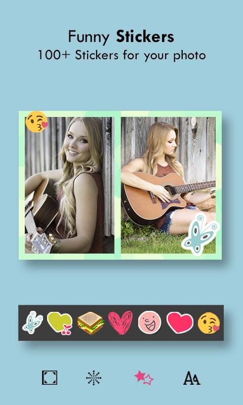 - Наклейки, смайликов текста и многое другое Photo Editor Tools, чтобы сделать идеальный стильный фото.