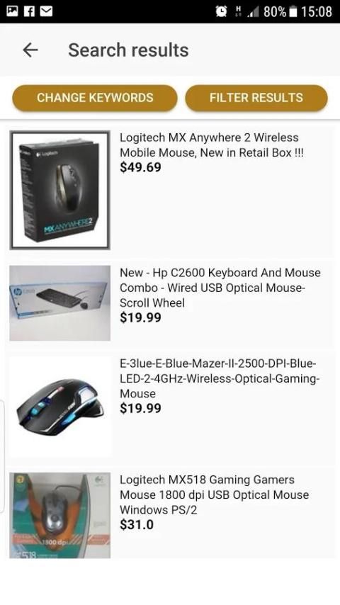 Приложение использует методы машинного обучения Google (Google Vision) для создания ключевых слов, которые затем используются, чтобы сделать поиск Ebay. Затем можно изменить ключевые слова, сгенерированные для выполнения более адекватного поиска.