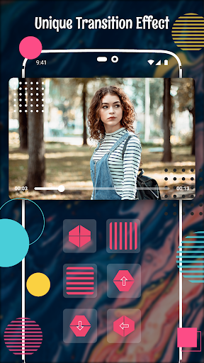 ✔️ много уникальных эффектов перехода, отрегулируйте движение, соотношение, музыку и т. Д.