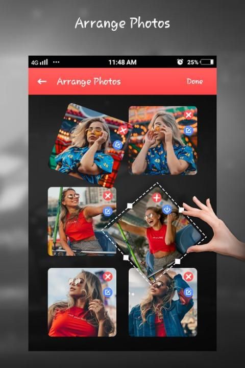 Photo Video Maker этого приложение, которое позволяет пользователю выбрать несколько фото из галереи и организовать в вашем собственном пути последовательности