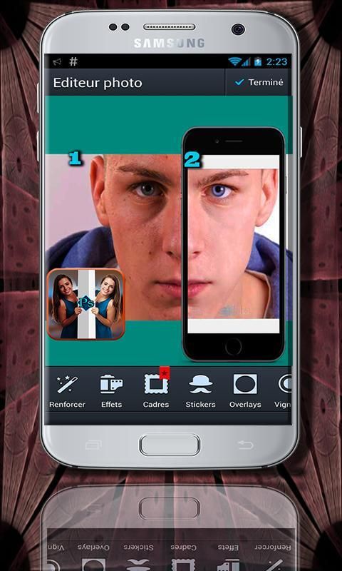 - Все, что вам нужно сделать, это выбрать изображение, которое будет регулировать либо забрать их с помощью Alcamra или выбранный редактор изображений в телефоне, а затем начать в выборе эффектов, которые вам нужно для вашего изображения и Achtyaroadhavh красивых кадров и выбора конкретного типа на изображение или поместить свою фотографию