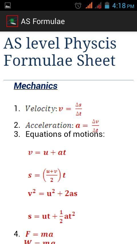 Это приложение дает определения и формулы CIE O & A физики уровня.