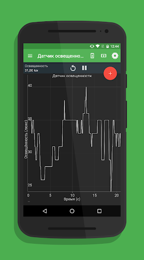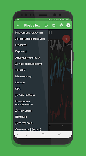 Дополнительные функции включают в себя возможность записи данных относительно текущего или прошедшего времени, выбор разделителя в .csv-файле (запятую или точку с запятой), изменения ширины линии на графике, изменения частоты сбора данных с датчика и управление включением экрана на протяжении всего времени измерения.