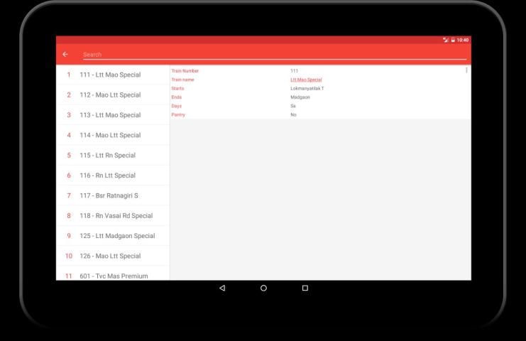 * Поиск деталь всех поездов в Индии (Вы можете увидеть детали, как маршрут и расписание путешествия во время, Кило метров пройденных, кладовая, и т.д.)