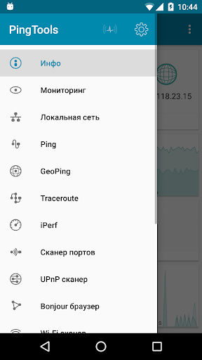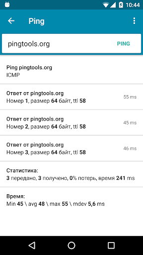 • Ping – знакомая всем команда. С помощью ping можно проверить связь с удаленным сервером, узнать о задержках соединения и многое другое. Поддерживается весь набор стандартных параметров, а так же ряд дополнительных функций: TCP и HTTPHTTPS пинг.