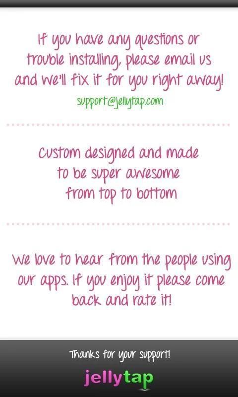 *** Каких-либо проблем, обратная связь, или заявки только по электронной почте support@jellytap.com, нам нравится слышать от людей, используя наши темы! ***