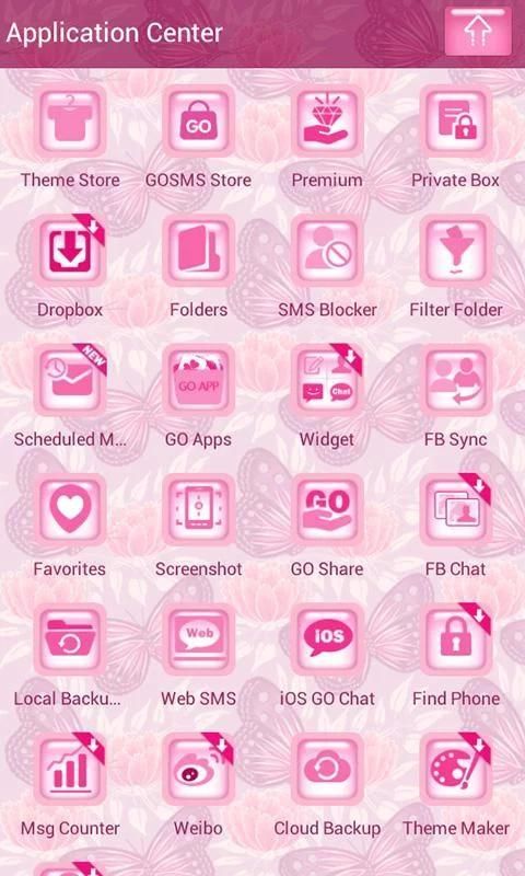 Нажмите App Icon> Нажмите заданную тему> Нажмите МЕСТНОЕ> Применить> Розовая бабочка GO SMS тему