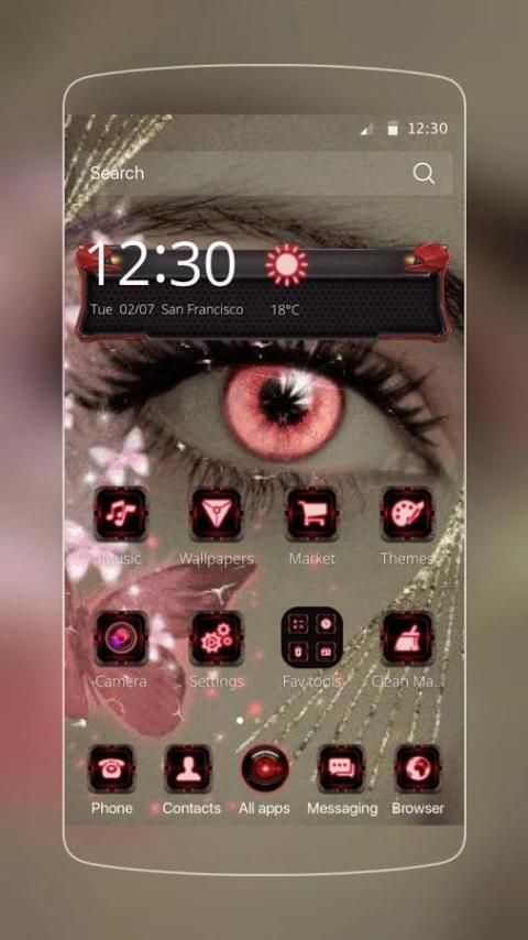 Установите тему Тема Розовый Любовь глаз, чтобы не только воспользоваться огромной коллекцией обоев высокой четкости, динамических обоев и 3D-тем, но также 3D-часами, 3D-погодой и эффектами перехода с переворачиванием экрана.