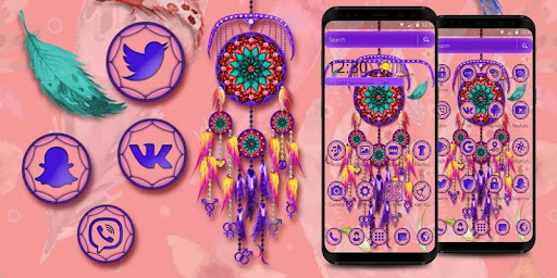 Перед установкой темы Ловец снов вам необходимо сначала установить Launcher. Есть тысячи бесплатных тем с иконками пурпурный и обоями розовый, например, динамические 3-D темы, темы единства, гравитации, параллакса и виртуальной реальности. Вы можете легко сменить стиль вашего устройство в соответствии с вашим любимым стилем. Наслаждайтесь Launcher!