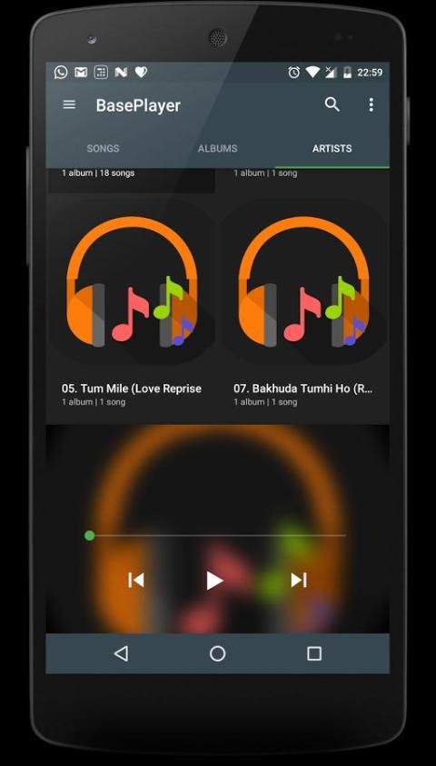 This музыка приложение имеет самый современный еще классический interface.The стиль этой музыки приложение просто элегантно. Она позволяет управлять музыкой очень легко и эффективно работать с мульти -Выберите вариант, чтобы играть песни, и теперь есть возможность управлять музыкой с помощью просмотра папок, а также. База игрока - Музыка становится одним из самых успешных и популярных, доступных на рынке андроид музыкальный плеер. Этот музыкальный плеер поддерживает MP3, WAV, FLAC и многие другие такие аудио форматы. Слушайте любимую музыку на самой элегантной и красивой пользовательским интерфейсом. Управление звуком песен с мощностью и красивой 5 полосный эквалайзер. Он основан на художников, альбомы, песни, список воспроизведения и т.д. (с поддержкой WAV, MP3, FLAC и многих других подобных форматов) Совершенная анимации и минималистский дизайн оказывает успокаивающее действие на вас.