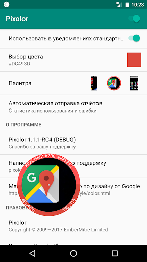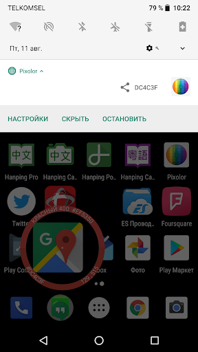 ★ С помощью уведомления можно: скрыть/показать "плавающее" кольцо; завершить работу приложения; передать последний полученный код цвета в другие приложения