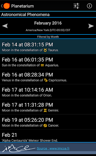 Notifications are available to not miss the various astronomical phenomena of our sky.